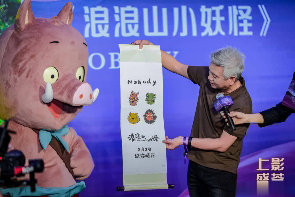 编剧、导演於水现场伸开《浪浪山小妖魔》画轴