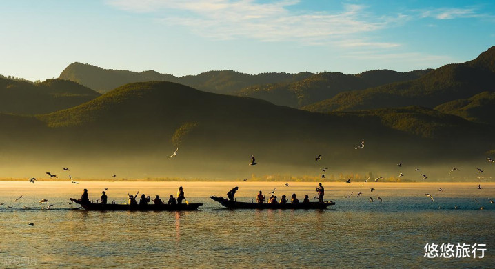 冬季的泸沽湖,蓝天碧水海鸥。在这里无用赶行程,沿湖漫游就很得志。