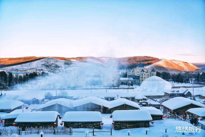 雪村板屋覆雪、红灯笼摇曳,比黑龙江雪乡更小众,但不缺暖乎乎的人烟气。不冻河长年不结冰,晨雾缭绕中河水潺潺。