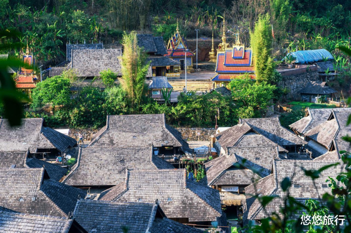 翁基古寨青瓦木楼依山而建,老寨咖啡馆里喝杯暖茶,静享慢时光。糯干古寨,傣家田园画卷。阳光穿过榕树,在傣楼投下斑驳光影。