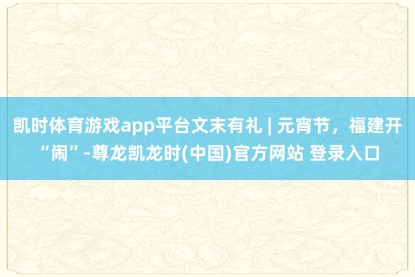 凯时体育游戏app平台文末有礼 | 元宵节,福建开“闹”-尊龙凯龙时(中国)官方网站 登录入口