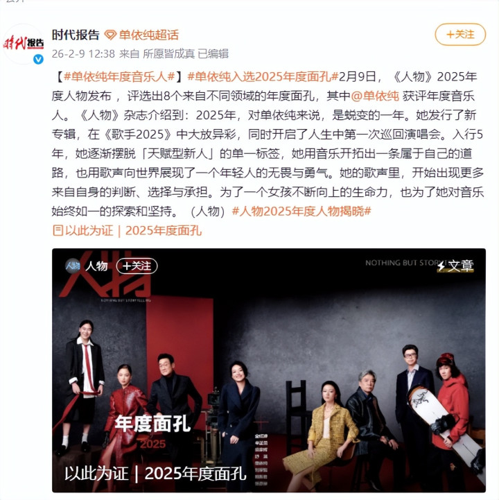 这一次,《东谈主物》杂志高调官宣,单依纯获评2025年度音乐东谈主,便是对她最大的招供,亦然她实力最佳的讲授。