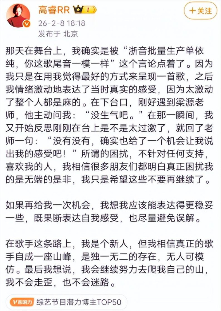 不事其后高睿也意志到了我方心境的失实,专门发微博谈了歉。
