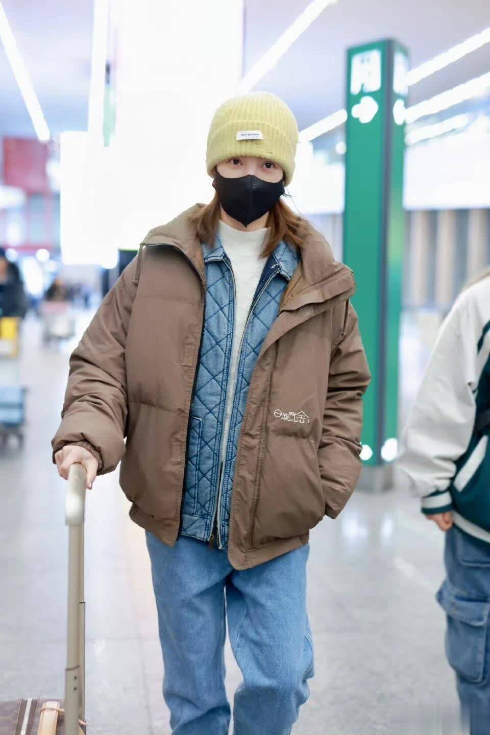 这套造型险些就是叠穿的王者,还是长短常经典的棕色羽绒服,不外此次金晨在内部搭配了牛仔夹克,一会儿街头潮东谈主的滋味就出来了。头上还戴了一顶出奇可儿的黄色帽子,用来提亮整套造型的嗅觉。就是这个黄色一般东谈主还真不太好独霸呢。