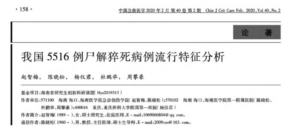 2020年,海南医学院的团队采集了宇宙5516例暴毙尸检陈诉。