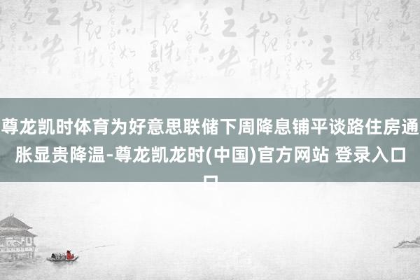 尊龙凯时体育为好意思联储下周降息铺平谈路住房通胀显贵降温-尊龙凯龙时(中国)官方网站 登录入口