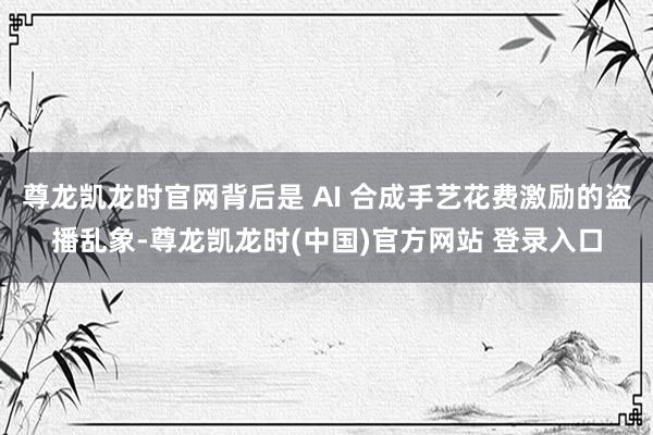 尊龙凯龙时官网背后是 AI 合成手艺花费激励的盗播乱象-尊龙凯龙时(中国)官方网站 登录入口